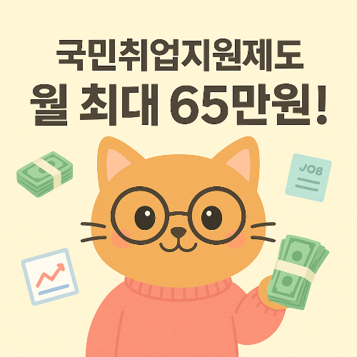 - 구직촉진수당: 매월 최대 65만 원 현금 지급